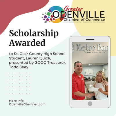 Thank you to our Sponsors: Premiere Sponsor - City of Odenville | Corporate Sponsors: adr Business & Marketing Strategies, Alabama Power, ALFA Insurance Moody, All American Ford, America's First Federal Credit Union, Cayce Wilson State Farm, Exit Coosa River Realty, Katering 101, Metro Bank and Union State Bank. | Business Sponsors: B & B Auto Sales, Inc., Charlie's BBQ, Christ Church Branch Cove, Emerald Valley Inspection Services, ERA King Real Estate Company, Jean's Flowers, Kinetic, Kristi Graham Scott Loan Officer NMLS 1734162, Revolution Roofing, Ridgeline Roofing, Stocks Broadcasting, Inc.