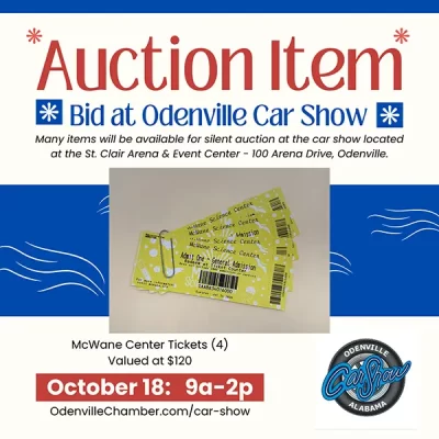 Thank you to our Sponsors: Premiere Sponsor - City of Odenville | Corporate Sponsors: adr Business & Marketing Strategies, Alabama Power, ALFA Insurance Moody, All American Ford, America's First Federal Credit Union, Cayce Wilson State Farm, Exit Coosa River Realty, Katering 101, Metro Bank and Union State Bank. | Business Sponsors: B & B Auto Sales, Inc., Calvary Baptist Church, Emerald Valley Inspection Services, ERA King Real Estate Company, Kinetic, Kristi Graham Scott Loan Officer NMLS 1734162, Revolution Roofing, Ridgeline Roofing, Stocks Broadcasting, Inc. and Wright's Removal & Clearing Services.